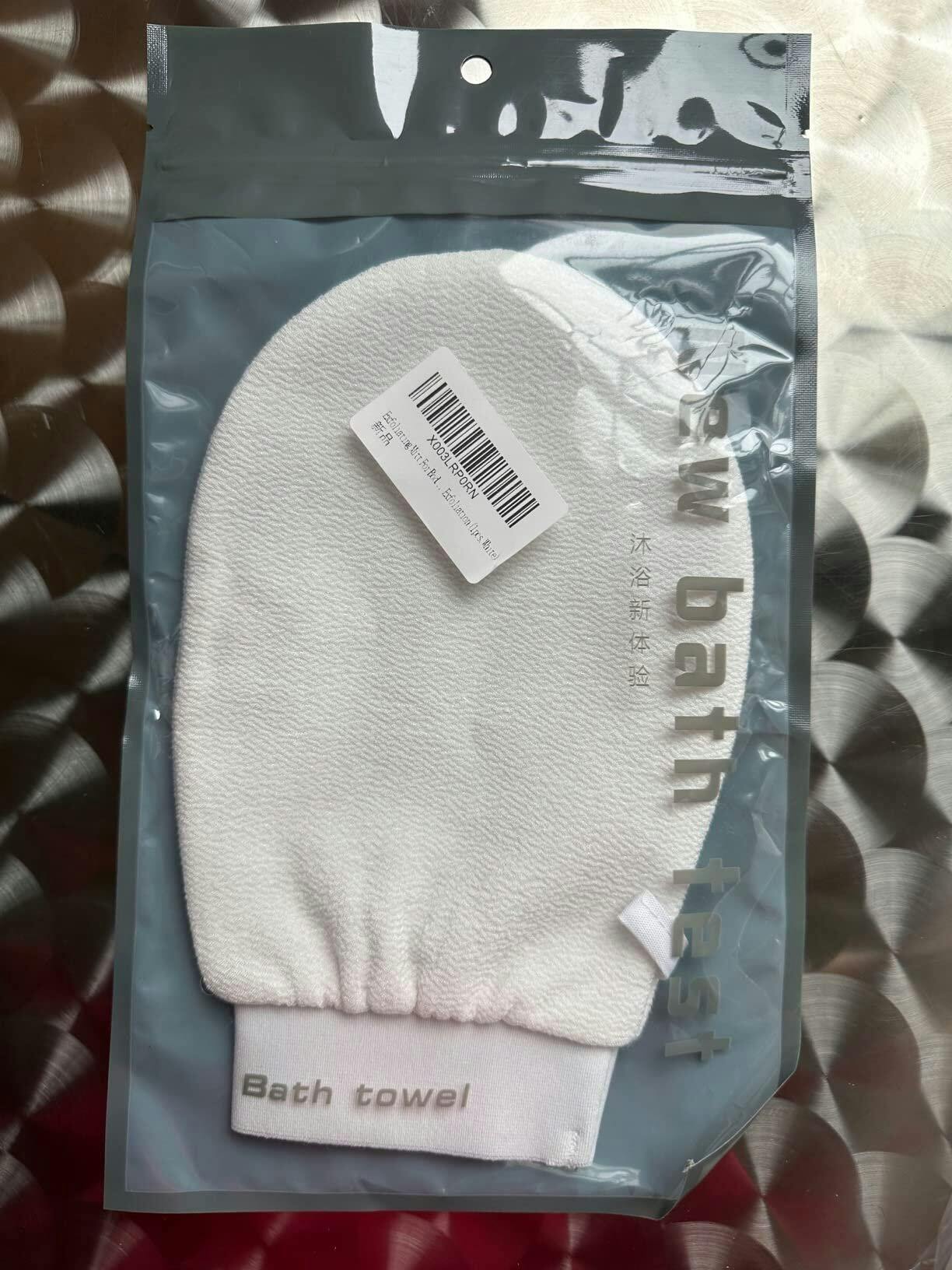 Recibí un guante exfoliante blanco de doble cara. Esta fue mi primera vez usando un guante exfoliante, así que no puedo compararlo con otros.